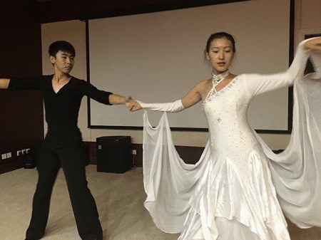北大的王騫和書院的楊羽辰合作表演倫巴舞